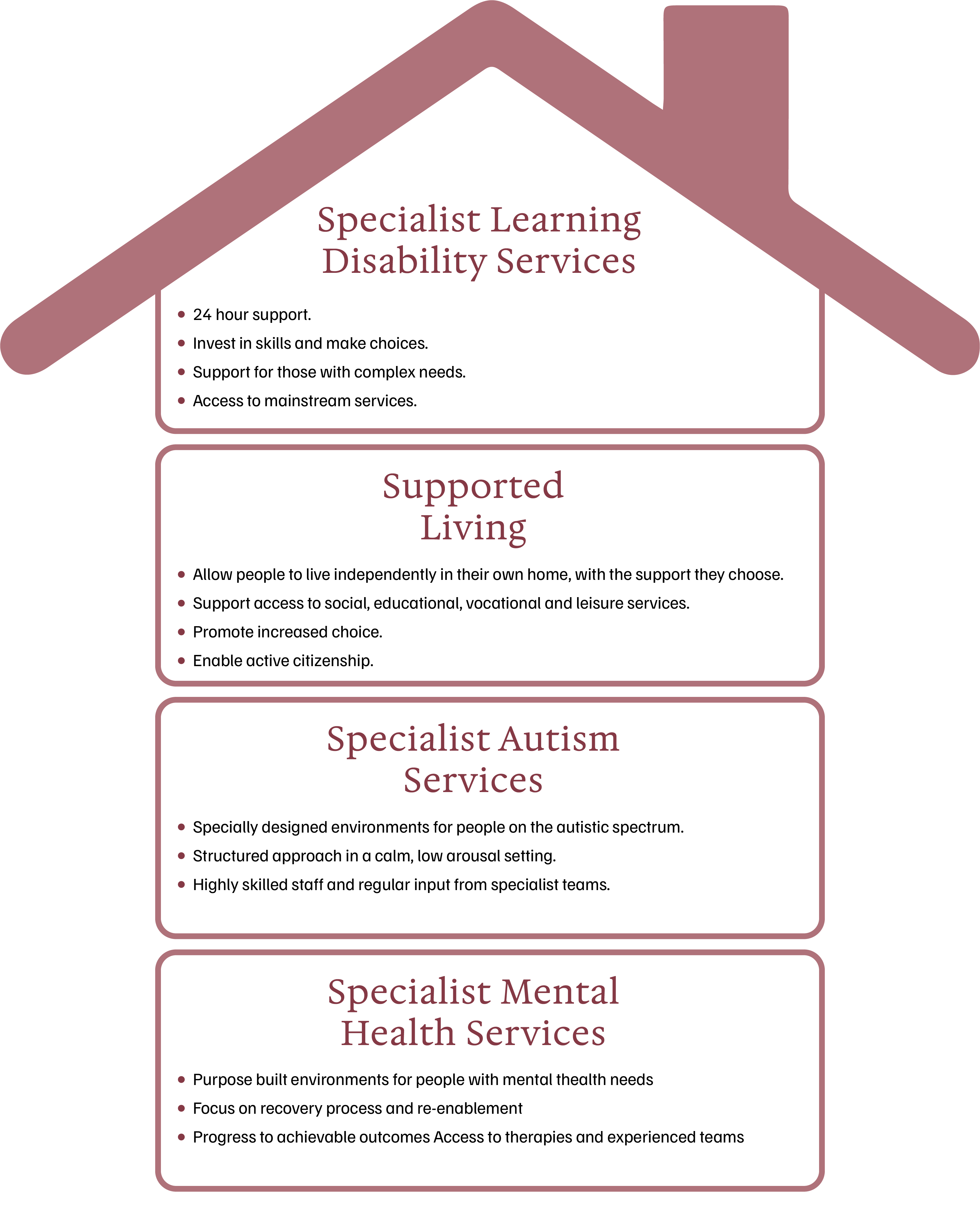 We are a leading provider of support for people with learning disabilities. With over 20 years’ experience of providing a flexible and varied range of services including supported living, residential care, short break services, packages for people with self-directed support, community-based day activities and outreach services. The people we support may have a range of needs that require intensive support including: